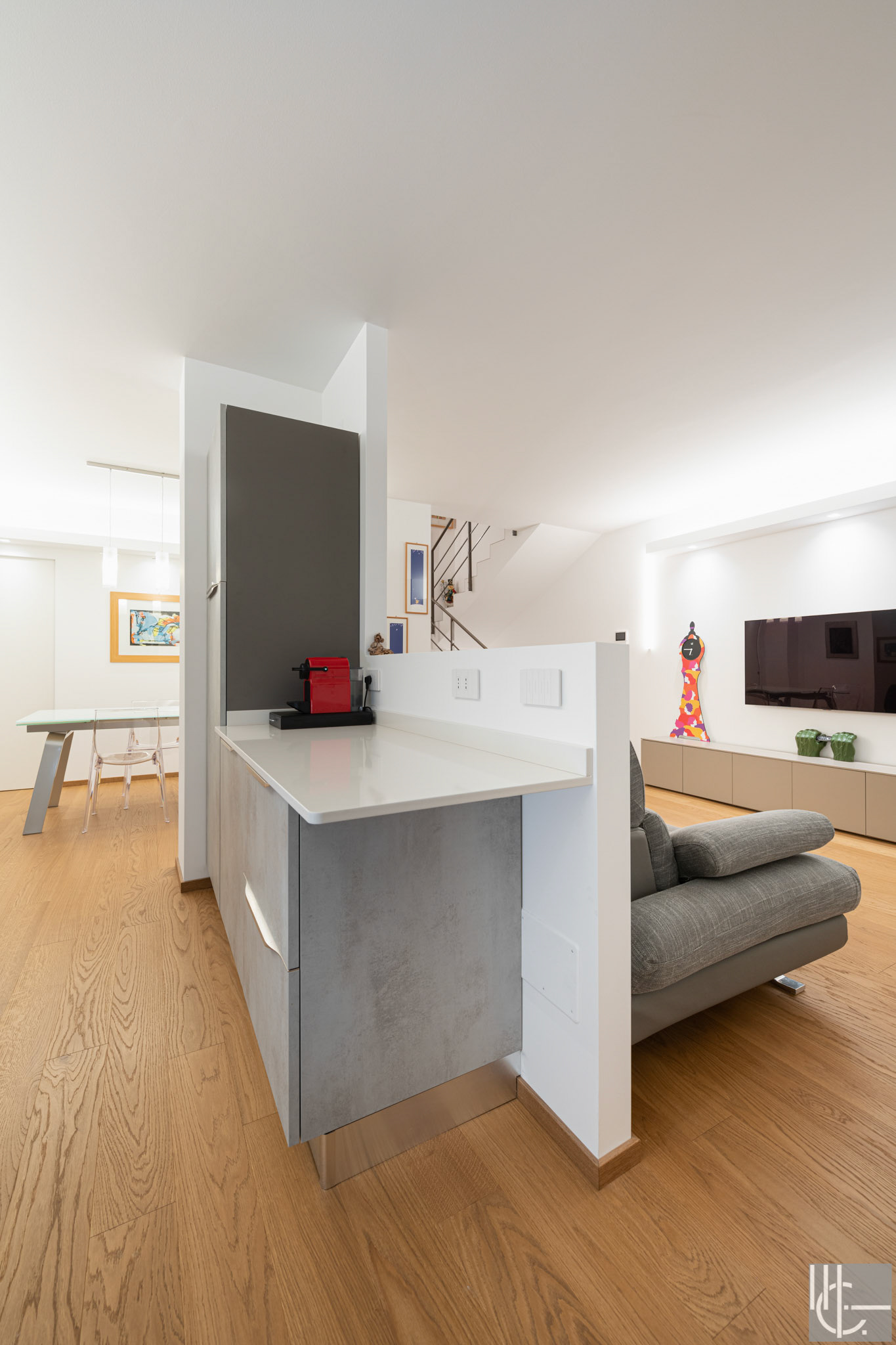 Uno splendido lavoro di ristrutturazione in un grande appartamento disposto su più piani, di sicuro un progetto complesso e impegnativo che mi ha galvanizzato fotografare.