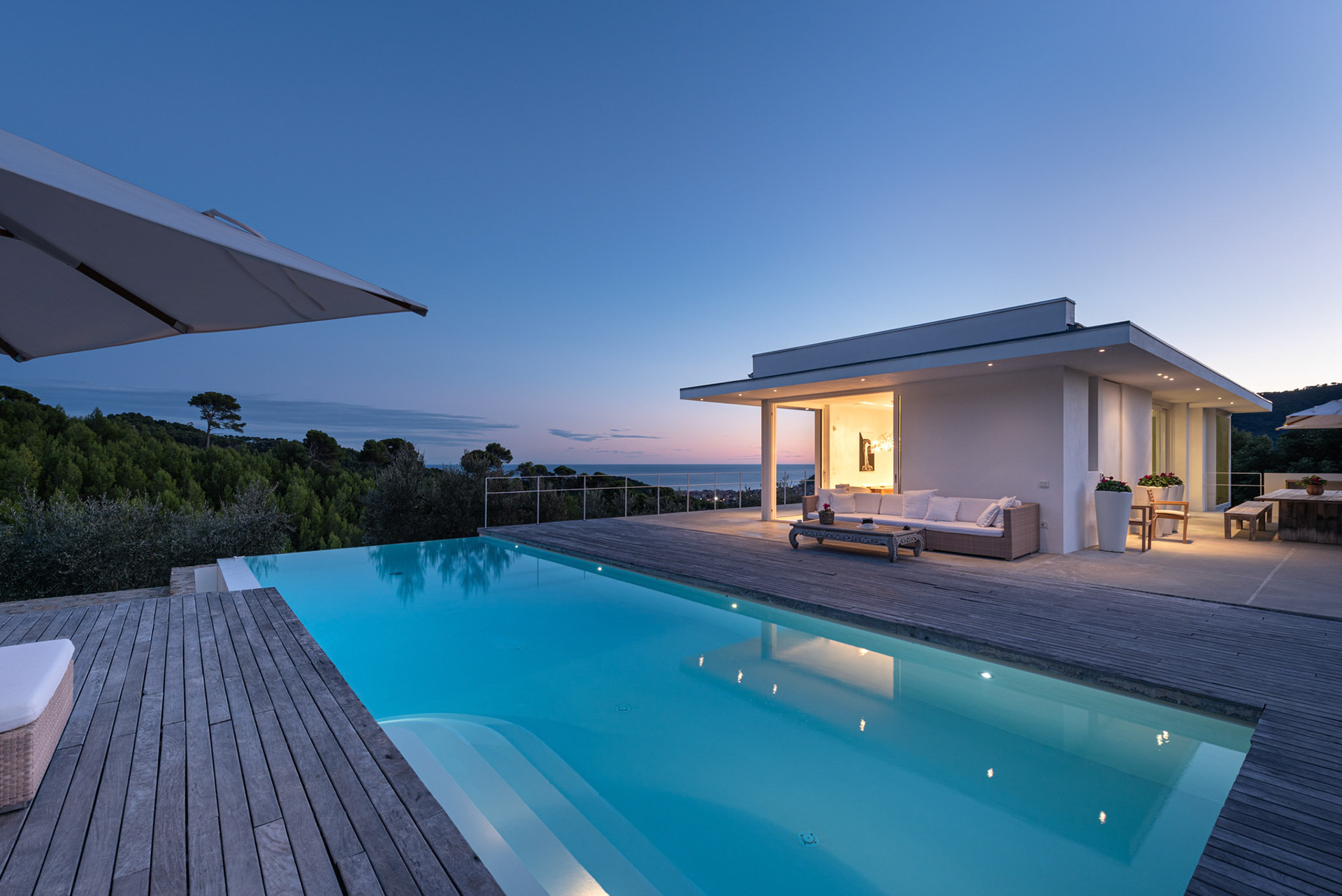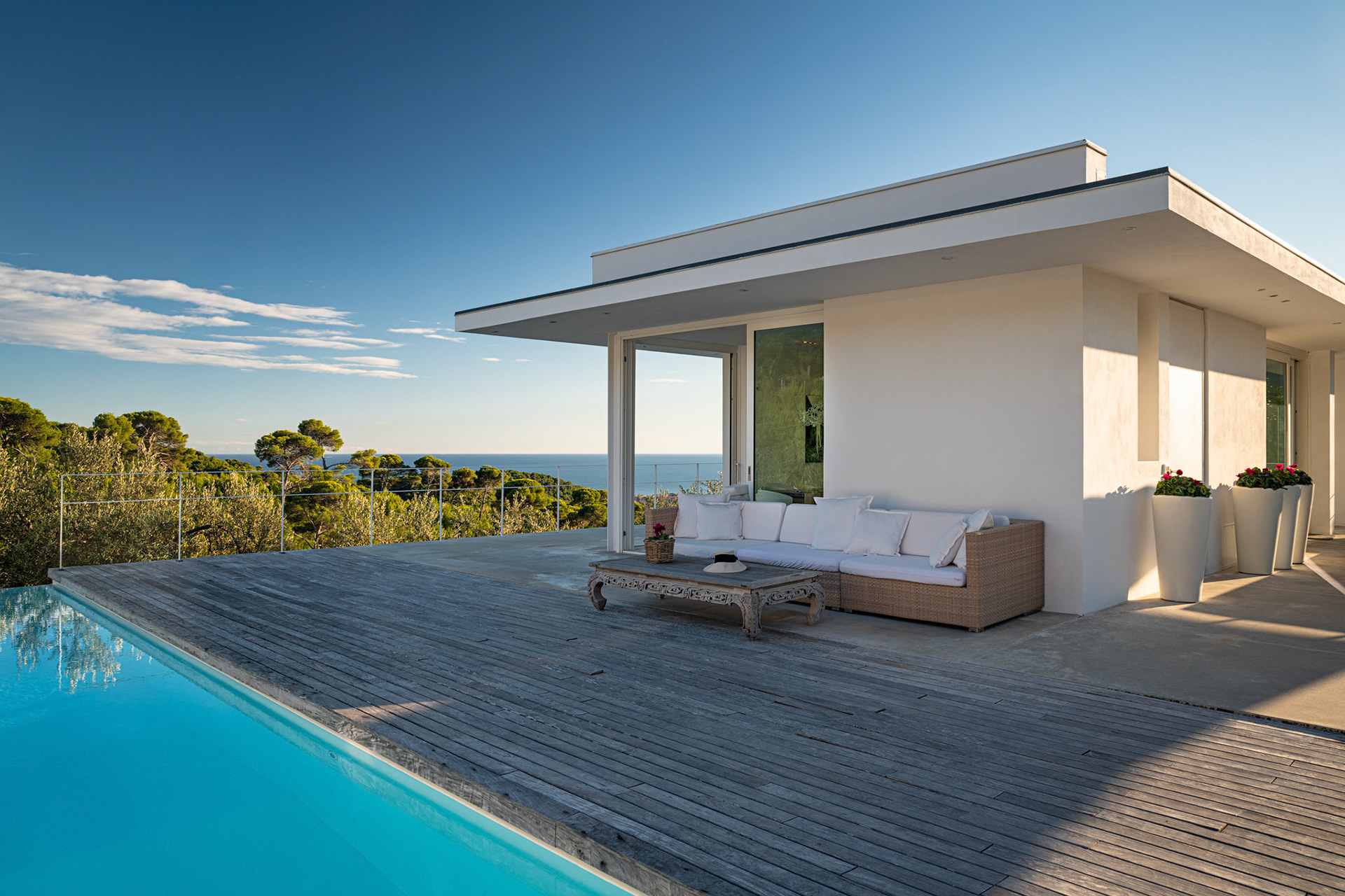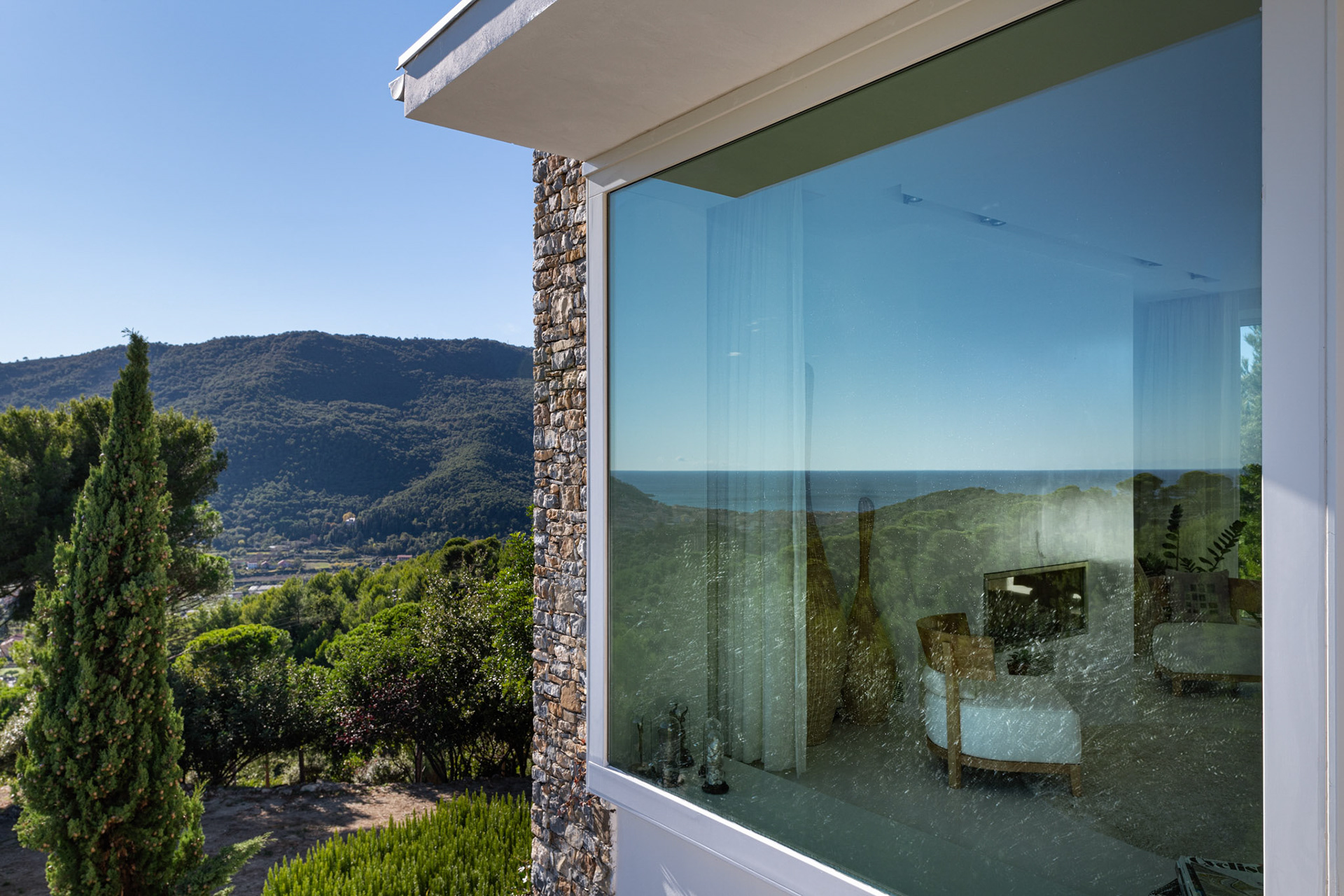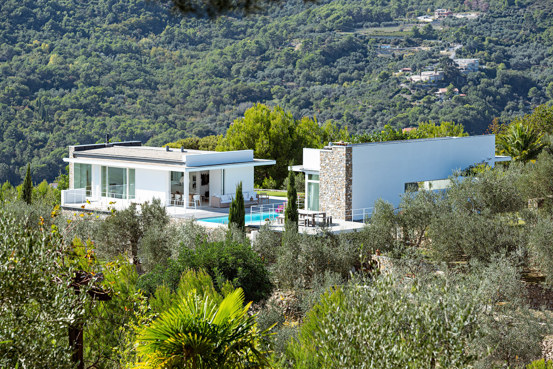 Un paradiso senza compromessi, un'architettura sobria, ariosa e ben inserita nel contesto della natura che la circonda, tra il mar Ligure e le Alpi Marittime